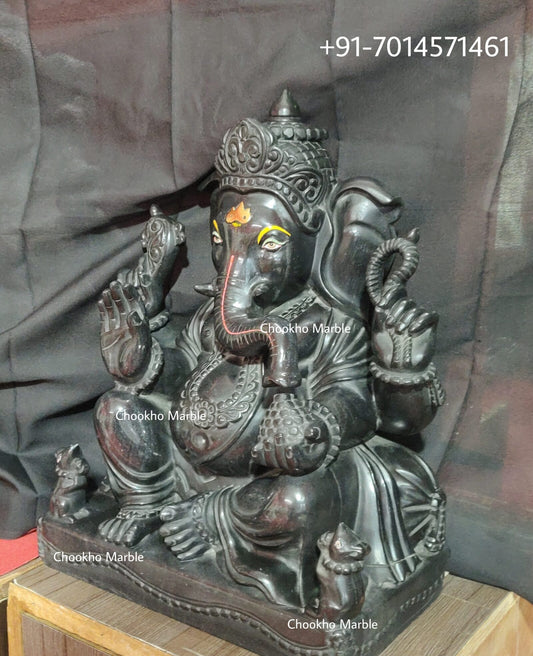 Black Marble Ganesh Ji, Size: - 15" X 9" X 24" Vinayak Idol By Chookho Marble (24 inches Height) Black Marble Ganesh Ji is made from the highest grade of Black marble with all the elegant attention to details and smooth finish. Moreover we have very experienced and skilled artisans...