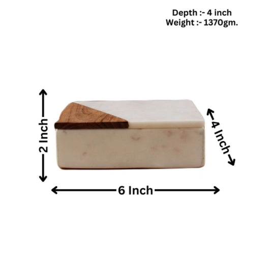 Wooden Square Box Natural Harmony in Stone and Wood Bring a touch of organic warmth to your vanity with the Wooden Square Box. This unique jewellery case seamlessly blends the cool, refined texture of premium natural white marble with the rich, earthy tones...