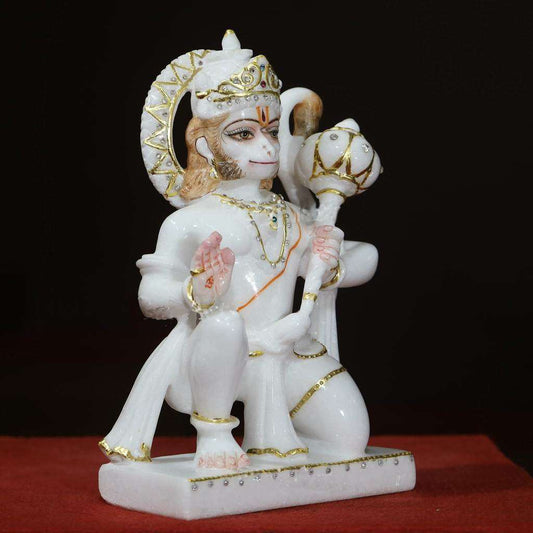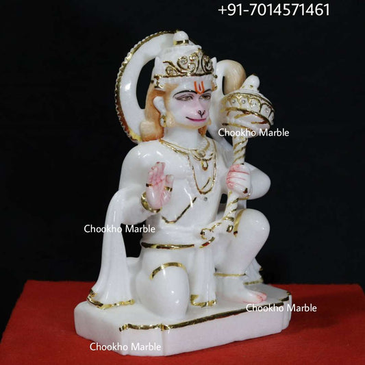 Lord Hanuman Marble Statue By Chookho Marble Lord Hanuman Marble Statue is made in one single piece of premium marble. He is sitting in a mudra called ashirwad mudra and other hand is holding Gada (mace), wearing a simple dhoti with his muscular and broad chest which is covered in...