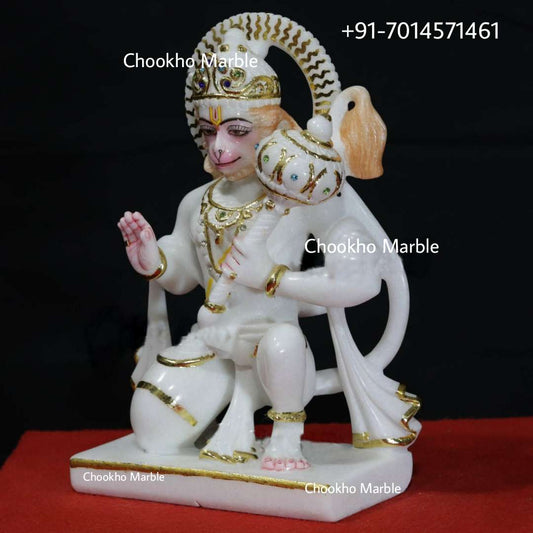 Marble Murti Hanuman Ji By Chookho Marble Marble Murti Hanuman Ji is made in one single piece of premium marble. He is sitting in a mudra called ashirwad mudra and other hand is holding Gada (mace), wearing a simple dhoti with his muscular and broad chest which is covered in...