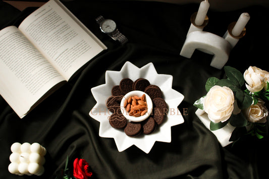 Marble Star Platter 9 Inches By Chookho Marble Marble Star Platter is handcrafted and 100% made with Marble Candle holder, influenced by the shape of lotus. It is a best consistent element around your space. The material used is 100% marble by skilled and experienced artisans. In short pattern...