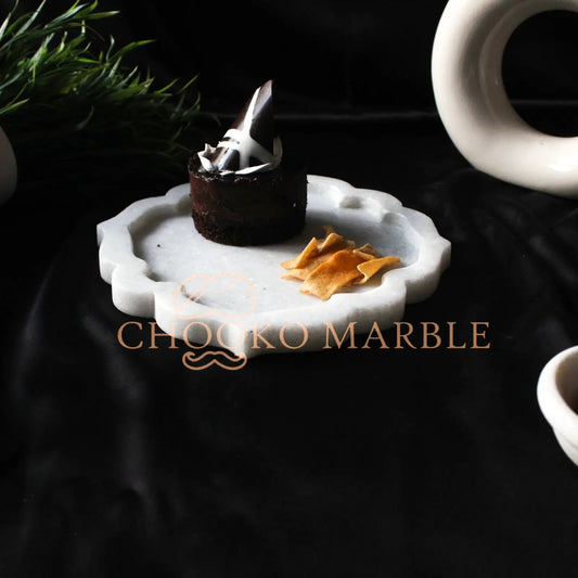 Mughal Platter 9 Inches In Marble By Chookho Marble Mughal Platter is handcrafted and 100% made with Marble Candle holder, influenced by the shape of lotus. It is a best consistent element around your space. The material used is 100% marble by skilled and experienced artisans. In short pattern...