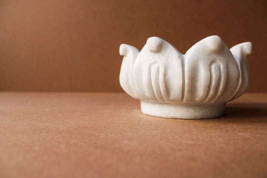 Simple Flower Shape Urli 6 Inches In Marble By Chookho Marble Simple Flower Shape Urli is handcrafted and 100% made with Marble It is influenced by the shape of lotus. It is a best consistent element around your space. The material used is 100% marble by skilled and experienced...