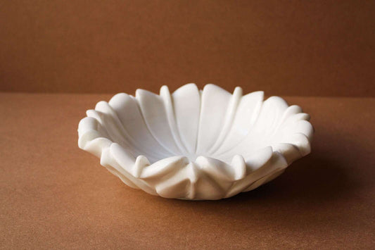Marble Ruffle Urli 6 Inches In Marble By Chookho Marble Marble Ruffle Urli is handcrafted and 100% made with Marble It is influenced by the shape of Ruffled waves. It is a best consistent element around your space. The material used is 100% marble by skilled and experienced artisans....