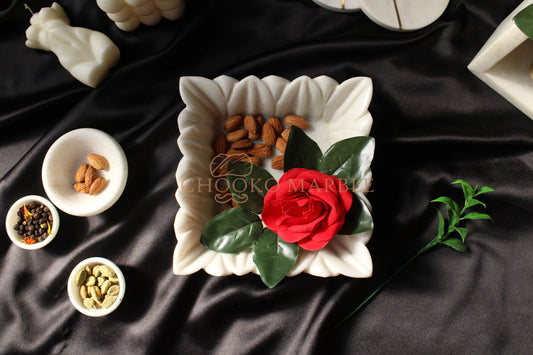 Marble Square Urli 6 Inches In Marble By Chookho Marble Marble Square Urli is handcrafted and 100% made with Marble It is influenced by the shape of Square With leaves carving on the border . It is a best consistent element around your space. The material used is 100%...