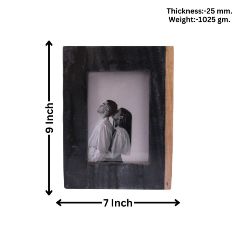 Frame your most cherished memories in a piece that balances industrial elegance with organic warmth. The Black Wooden Book photo frame features a sophisticated dual-material construction, joining deep, midnight-black natural stone with a warm, handcrafted wooden edge. This "book-like" silhouette creates a striking architectural profile, making it a perfect statement piece for a minimalist library, executive desk, or contemporary bedside table.