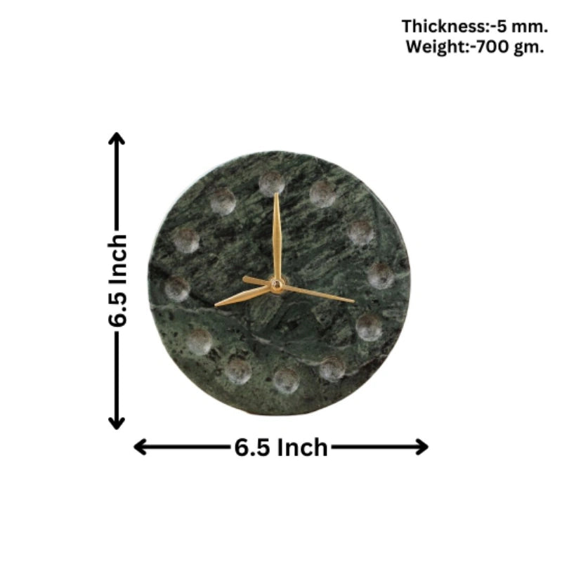 Add a touch of organic modernism to your workspace or mantel with the Bubble Green marble table clock. Hand-carved from premium natural green stone, this timepiece features a distinctive "bubble" dial design where traditional numbers are replaced by twelve precision-drilled circular indentations. The deep verdant tones and unique mineral veining of the marble provide a rich, high-contrast backdrop for the elegant golden hands, making it as much a piece of functional art as it is a reliable timekeeper.