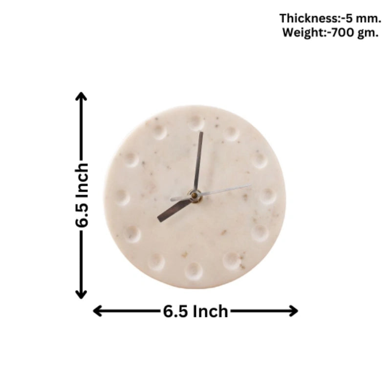 Add an air of clean, sophisticated luxury to your home or workspace with the Bubble White marble table clock. Hand-carved from premium natural white marble, this timepiece features a unique "bubble" dial design where traditional numbers are replaced by twelve precision-drilled circular indentations. The soft, organic veining of the white stone provides a subtle, elegant backdrop for the sleek metallic hands, making it a perfect functional centerpiece for modern, minimalist, or transitional interiors.