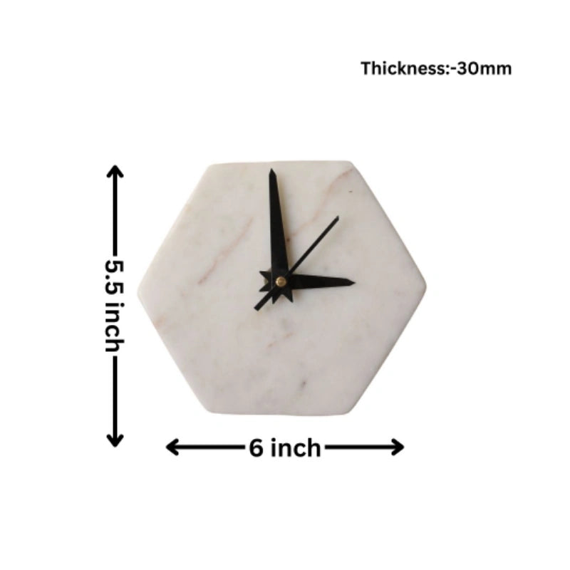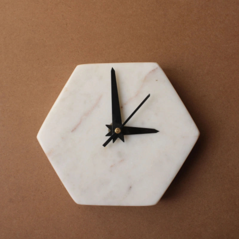 Add an architectural edge to your decor with the Hexagon marble table clock, a timepiece that effortlessly merges geometric boldness with the timeless elegance of natural stone. Hand-carved from a solid block of premium white marble, its six-sided silhouette serves as a striking focal point for any modern desk, bookshelf, or mantel. The pristine face showcases delicate, one-of-a-kind organic veining, ensuring that your clock is a unique work of functional art.