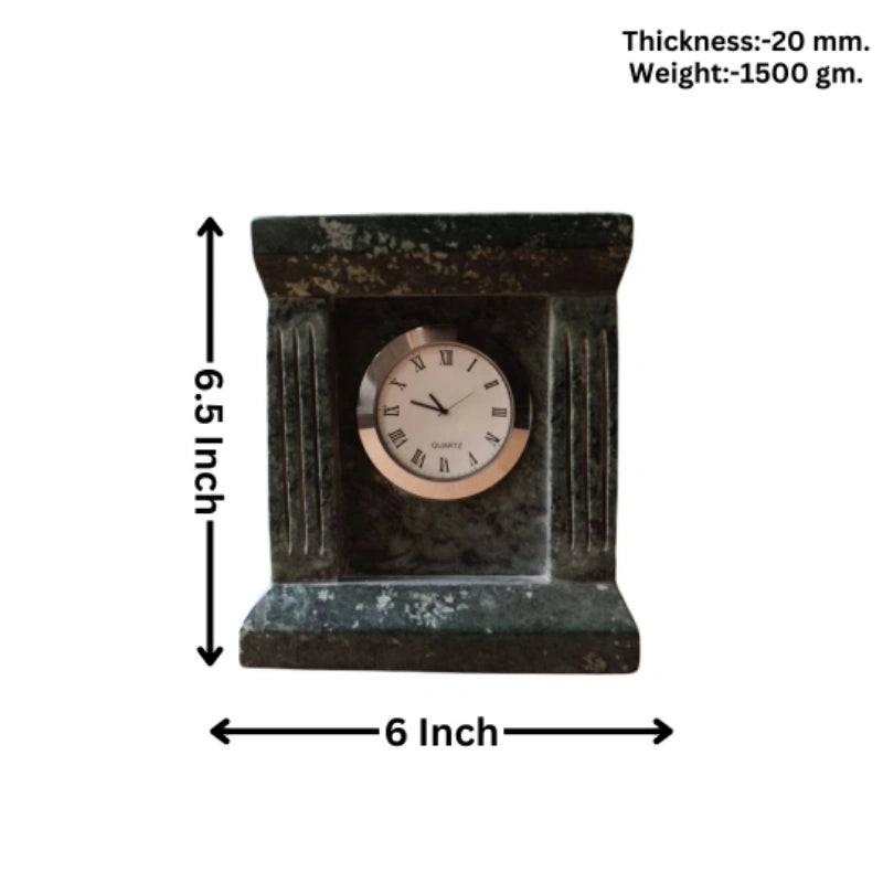The Italian Architecture Green model is designed for those who seek high-end, substantial decor with a stately presence. Standing at 6.5 inches tall and 6 inches wide, its robust form provides an unrivaled sense of permanence on any mantel or executive desk. Unlike mass-produced lightweight clocks, this piece is crafted with a significant 20 mm thickness and a professional weight of 1500 gm, offering exceptional stability and the enduring quality of natural stone.