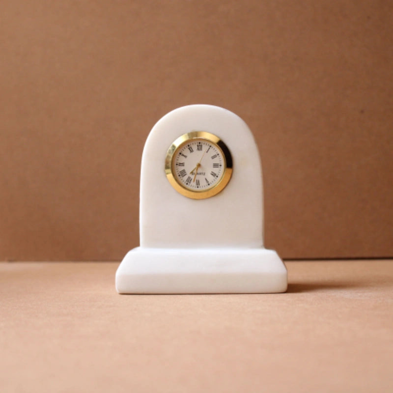 Infuse your home or workspace with a sense of calm sophistication with the U Shape White marble table clock. Hand-carved from a solid block of premium natural white marble, this timepiece features a distinctive arched or "U-shaped" silhouette that celebrates modern architectural forms. The pristine white stone is characterized by its soft, ethereal veining and unique mineral textures, ensuring that every clock is a one-of-a-kind functional sculpture.