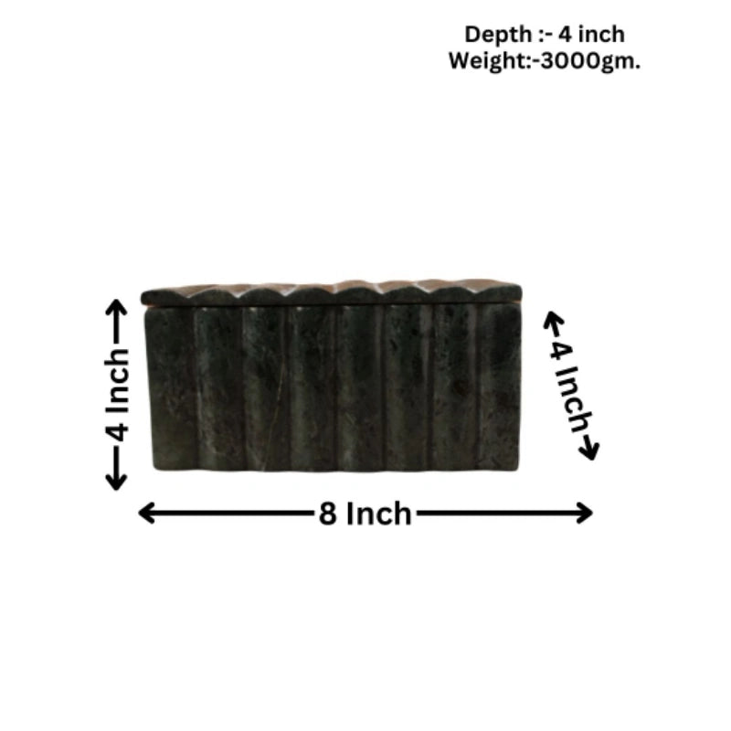 Designed for those who appreciate high-end, weighted decor, the Wavy Green box offers a level of permanence and security that standard lightweight containers cannot match. Boasting a robust weight of 3000 gm, this solid-stone box provides unrivaled stability on smooth surfaces. The cool-to-the-touch natural marble creates a protective, luxury environment for your most valued treasures, while the matching lidded top keeps your essentials private and organized.